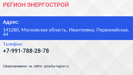 РЕГИОН-ЭНЕРГОСТРОЙ по адресу 141280, Московская область, Ивантеевка, Первомайская, 44 в дальнейшем Организация, размещена в следующих категориях: