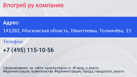 Впогреб.ру, компания по адресу 141282, Московская область, Ивантеевка, Толмачёва, 15 в дальнейшем Организация, размещена в следующих категориях: