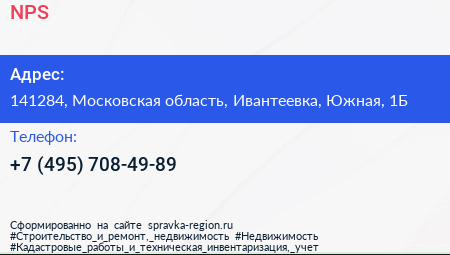 NPS по адресу 141284, Московская область, Ивантеевка, Южная, 1Б в дальнейшем Организация, размещена в следующих категориях: