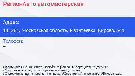 РегионАвто, автомастерская по адресу 141281, Московская область, Ивантеевка, Кирова, 54а в дальнейшем Организация, размещена в следующих категориях: