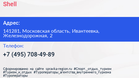Shell по адресу 141281, Московская область, Ивантеевка, Железнодорожная, 2 в дальнейшем Организация, размещена в следующих категориях: