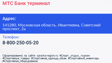 МТС-Банк, терминал по адресу 141280, Московская область, Ивантеевка, Советский проспект, 2а в дальнейшем Организация, размещена в следующих категориях: