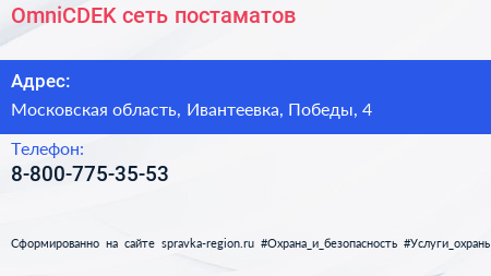 OmniCDEK, сеть постаматов по адресу Московская область, Ивантеевка, Победы, 4 в дальнейшем Организация, размещена в следующих категориях:
