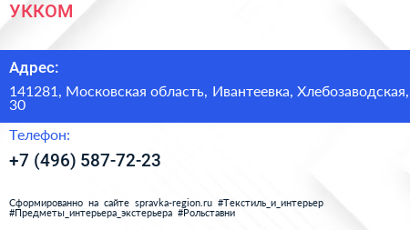 УККОМ по адресу 141281, Московская область, Ивантеевка, Хлебозаводская, 30 в дальнейшем Организация, размещена в следующих категориях: