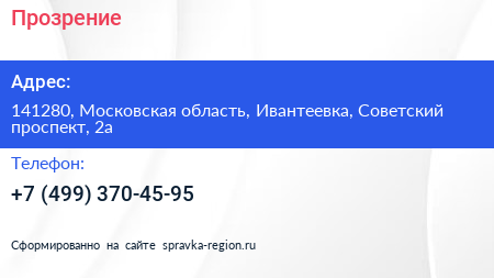 Прозрение по адресу 141280, Московская область, Ивантеевка, Советский проспект, 2а в дальнейшем Организация, размещена в следующих категориях: