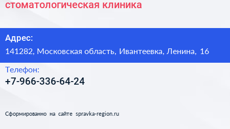 стоматологическая клиника по адресу 141282, Московская область, Ивантеевка, Ленина, 16 в дальнейшем Организация, размещена в следующих категориях: