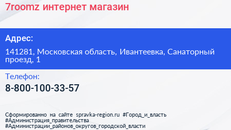 7roomz, интернет-магазин по адресу 141281, Московская область, Ивантеевка, Санаторный проезд, 1 в дальнейшем Организация, размещена в следующих категориях: