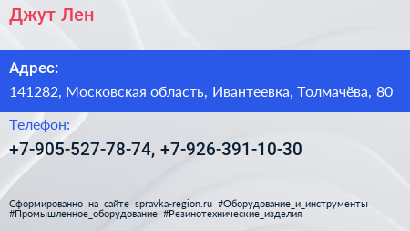 Джут-Лен по адресу 141282, Московская область, Ивантеевка, Толмачёва, 80 в дальнейшем Организация, размещена в следующих категориях: