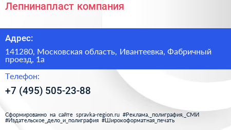 Лепнинапласт, компания по адресу 141280, Московская область, Ивантеевка, Фабричный проезд, 1а в дальнейшем Организация, размещена в следующих категориях: