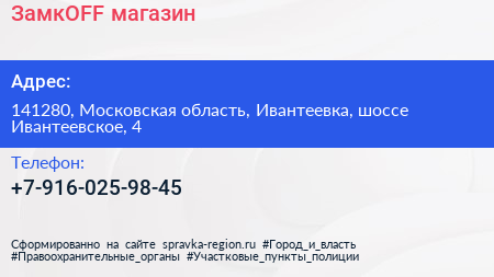 ЗамкOFF, магазин по адресу 141280, Московская область, Ивантеевка, шоссе Ивантеевское, 4 в дальнейшем Организация, размещена в следующих категориях: