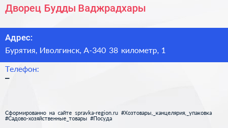 Дворец Будды Ваджрадхары по адресу Бурятия, Иволгинск, А-340 38 километр, 1 в дальнейшем Организация, размещена в следующих категориях: