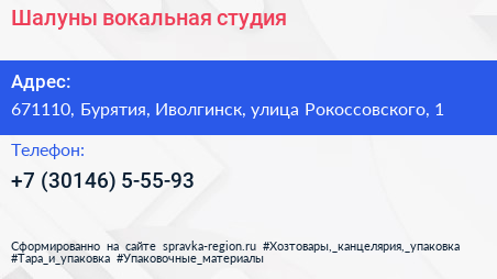 Шалуны, вокальная студия по адресу 671110, Бурятия, Иволгинск, улица Рокоссовского, 1 в дальнейшем Организация, размещена в следующих категориях: