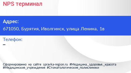 NPS, терминал по адресу 671050, Бурятия, Иволгинск, улица Ленина, 1в в дальнейшем Организация, размещена в следующих категориях: