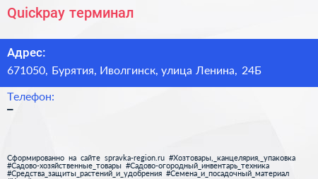 Quickpay, терминал по адресу 671050, Бурятия, Иволгинск, улица Ленина, 24Б в дальнейшем Организация, размещена в следующих категориях: