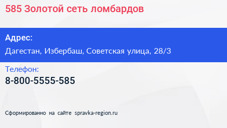 585*Золотой, сеть ломбардов по адресу Дагестан, Избербаш, Советская улица, 28/3 в дальнейшем Организация, размещена в следующих категориях: