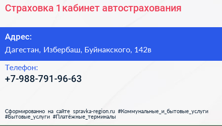 Страховка №1, кабинет автострахования по адресу Дагестан, Избербаш, Буйнакского, 142в в дальнейшем Организация, размещена в следующих категориях: