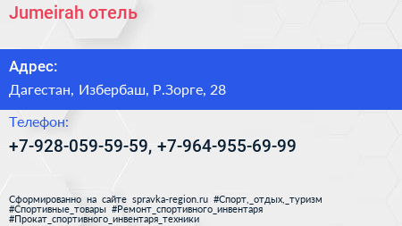 Jumeirah, отель по адресу Дагестан, Избербаш, Р.Зорге, 28 в дальнейшем Организация, размещена в следующих категориях: