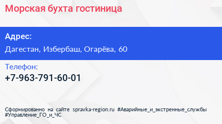 Морская бухта, гостиница по адресу Дагестан, Избербаш, Огарёва, 60 в дальнейшем Организация, размещена в следующих категориях: