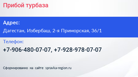 Прибой, турбаза по адресу Дагестан, Избербаш, 2-я Приморская, 36/1 в дальнейшем Организация, размещена в следующих категориях: