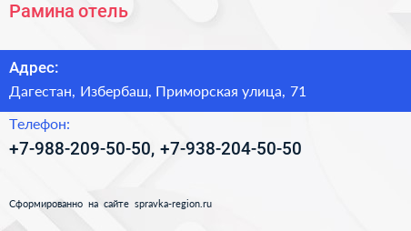 Рамина, отель по адресу Дагестан, Избербаш, Приморская улица, 71 в дальнейшем Организация, размещена в следующих категориях: