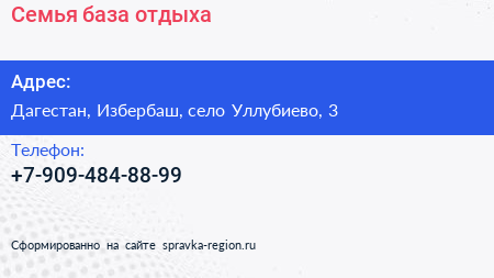 Семья, база отдыха по адресу Дагестан, Избербаш, село Уллубиево, 3 в дальнейшем Организация, размещена в следующих категориях: