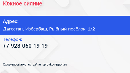 Южное сияние по адресу Дагестан, Избербаш, Рыбный посёлок, 1/2 в дальнейшем Организация, размещена в следующих категориях: