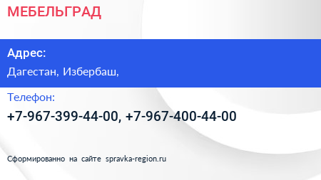 МЕБЕЛЬГРАД по адресу Дагестан, Избербаш, в дальнейшем Организация, размещена в следующих категориях: