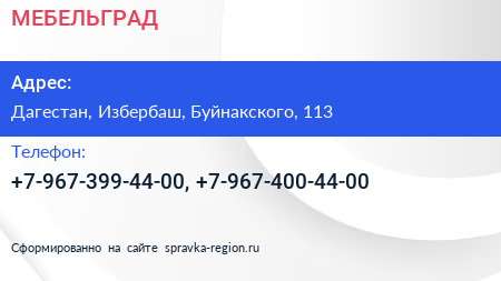 МЕБЕЛЬГРАД по адресу Дагестан, Избербаш, Буйнакского, 113 в дальнейшем Организация, размещена в следующих категориях: