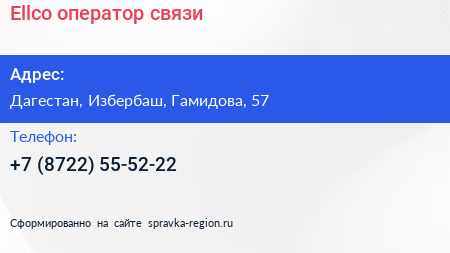 Ellco, оператор связи по адресу Дагестан, Избербаш, Гамидова, 57 в дальнейшем Организация, размещена в следующих категориях: