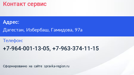 Контакт, сервис по адресу Дагестан, Избербаш, Гамидова, 97а в дальнейшем Организация, размещена в следующих категориях:
