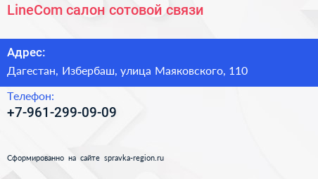 LineCom, салон сотовой связи по адресу Дагестан, Избербаш, улица Маяковского, 110 в дальнейшем Организация, размещена в следующих категориях: