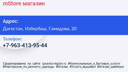 mStore, магазин по адресу Дагестан, Избербаш, Гамидова, 20 в дальнейшем Организация, размещена в следующих категориях: