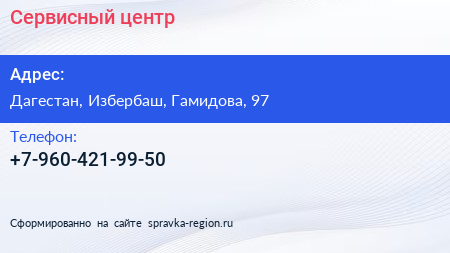 Сервисный центр по адресу Дагестан, Избербаш, Гамидова, 97 в дальнейшем Организация, размещена в следующих категориях: