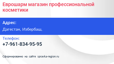 Еврошарм, магазин профессиональной косметики по адресу Дагестан, Избербаш, в дальнейшем Организация, размещена в следующих категориях: