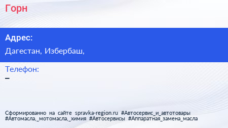 Горн по адресу Дагестан, Избербаш, в дальнейшем Организация, размещена в следующих категориях: