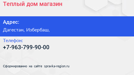 Теплый дом, магазин по адресу Дагестан, Избербаш, в дальнейшем Организация, размещена в следующих категориях: