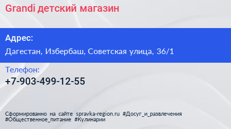 Grandi, детский магазин по адресу Дагестан, Избербаш, Советская улица, 36/1 в дальнейшем Организация, размещена в следующих категориях: