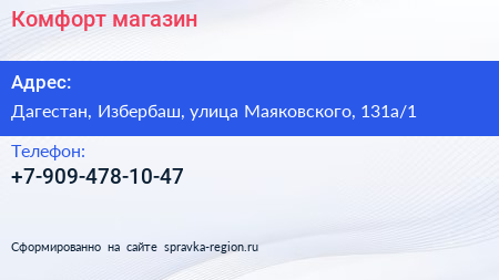 Комфорт, магазин по адресу Дагестан, Избербаш, улица Маяковского, 131а/1 в дальнейшем Организация, размещена в следующих категориях: