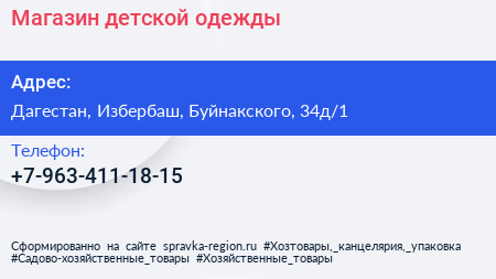 Магазин детской одежды по адресу Дагестан, Избербаш, Буйнакского, 34д/1 в дальнейшем Организация, размещена в следующих категориях: