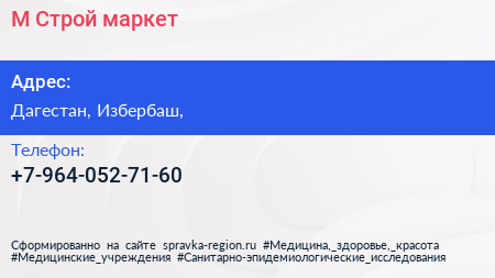 М-Строй маркет по адресу Дагестан, Избербаш, в дальнейшем Организация, размещена в следующих категориях: