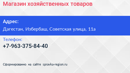 Магазин хозяйственных товаров по адресу Дагестан, Избербаш, Советская улица, 11а в дальнейшем Организация, размещена в следующих категориях: