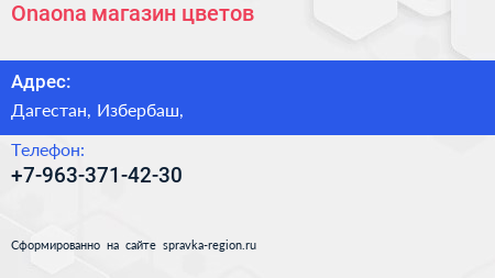 Onaona, магазин цветов по адресу Дагестан, Избербаш, в дальнейшем Организация, размещена в следующих категориях: