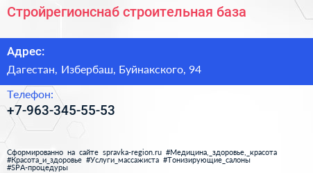 Стройрегионснаб, строительная база по адресу Дагестан, Избербаш, Буйнакского, 94 в дальнейшем Организация, размещена в следующих категориях: