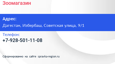 Зоомагазин по адресу Дагестан, Избербаш, Советская улица, 9/1 в дальнейшем Организация, размещена в следующих категориях: