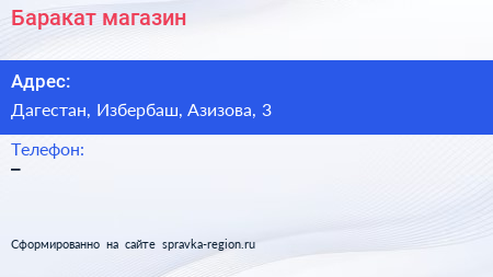 Баракат, магазин по адресу Дагестан, Избербаш, Азизова, 3 в дальнейшем Организация, размещена в следующих категориях: