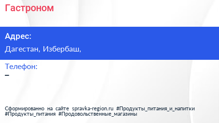 Гастроном по адресу Дагестан, Избербаш, в дальнейшем Организация, размещена в следующих категориях: