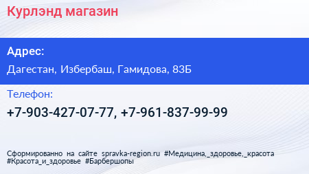 Курлэнд, магазин по адресу Дагестан, Избербаш, Гамидова, 83Б в дальнейшем Организация, размещена в следующих категориях: