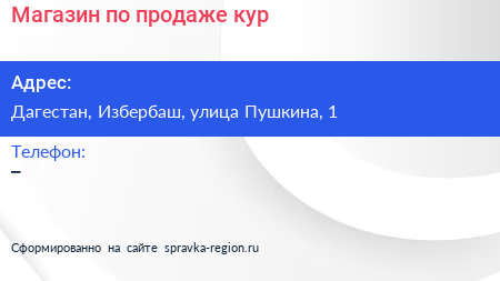 Магазин по продаже кур по адресу Дагестан, Избербаш, улица Пушкина, 1 в дальнейшем Организация, размещена в следующих категориях: