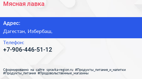 Мясная лавка по адресу Дагестан, Избербаш, в дальнейшем Организация, размещена в следующих категориях: