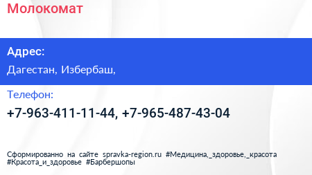 Молокомат по адресу Дагестан, Избербаш, в дальнейшем Организация, размещена в следующих категориях: